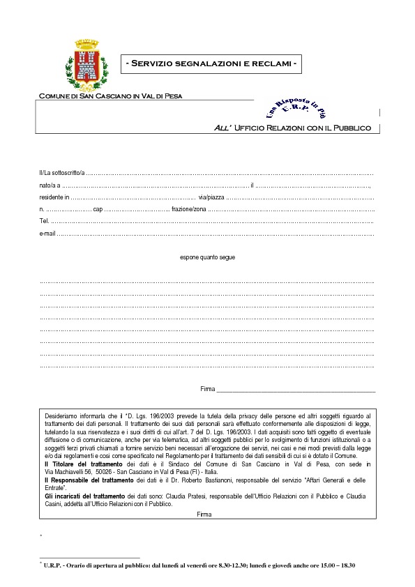 (Modulo segnalazioni e reclami)