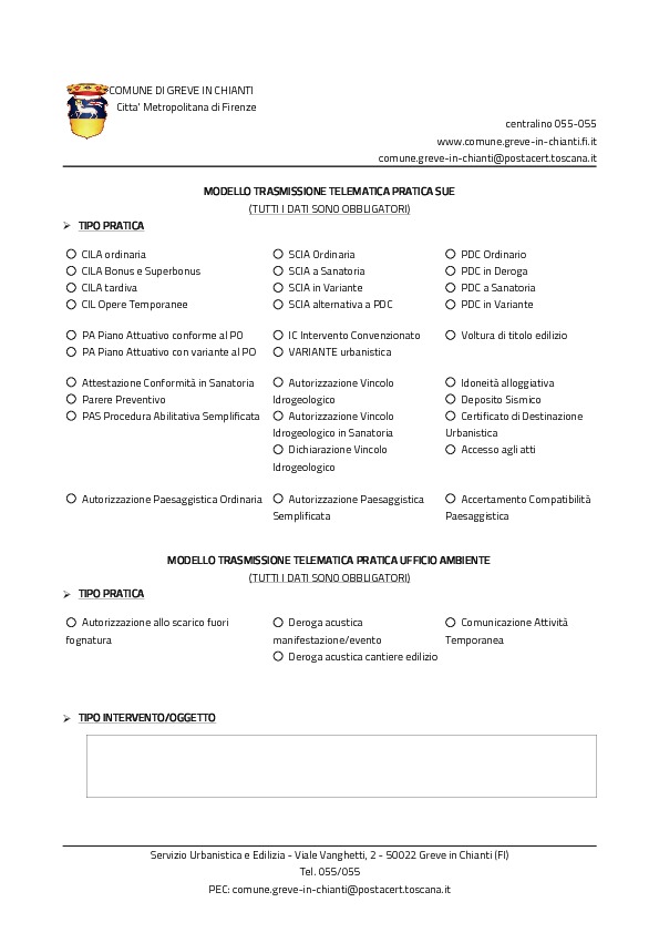 Modulo da allegare all'invio PEC di una pratica di edilizia (sportello SUE) e Ambiente