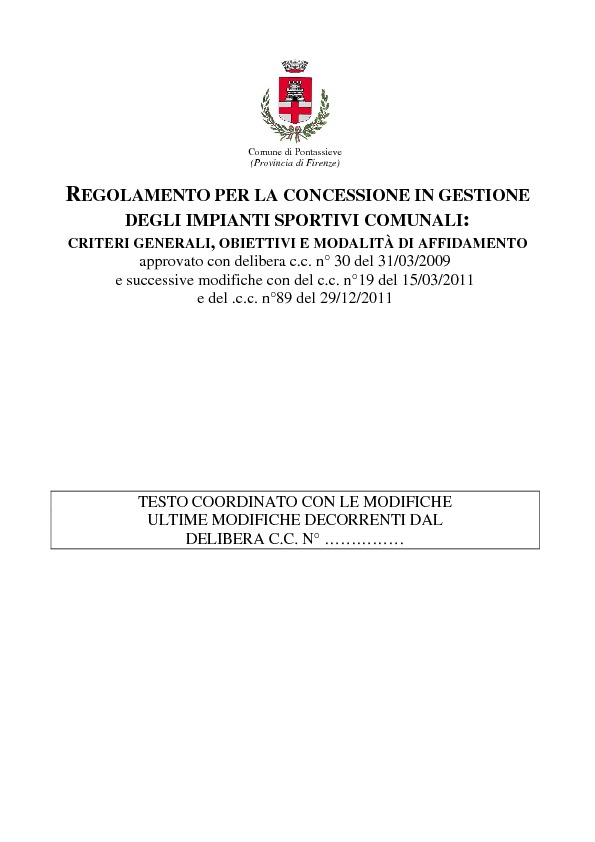 | Numero documento | Regolamento per la concessione degli impianti sportivi comunali |